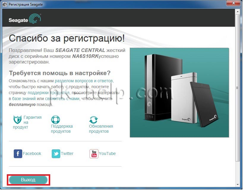 После этого появится окно с благодарностью за регистрацию, нажимаем "Выход".